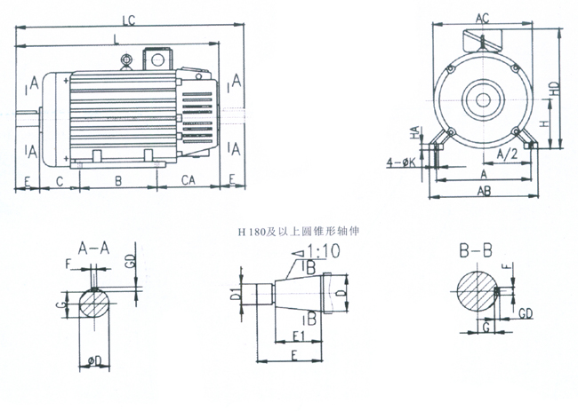 三、YZR,450-475技術參數及安裝與外形尺寸