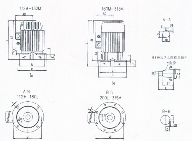 二、YZR112-315 IM3安裝尺寸與外形尺寸